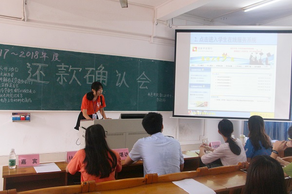 为推进诚信还款工作,保证学生还款工作的顺利进行,5月12日,信息工程学院勤工助学中心贷款部于弘雷楼710室举办2017至2018年度还款确认会。勤工助学中心指导老师潘堪达、秘书长林泽姿、校级与院级学生助学中心干部以及14级贷款毕业生出席本次活动。会上,贷款部干部进行贷款知识讲解与指导毕业贷款生填写贷款诚信表。