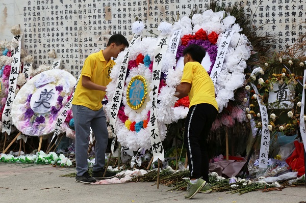 最后,团委青协部干事黄金生发言。他在纪念碑下重温烈士们的英勇事迹,并庄严承诺,“将努力学习,踏着革命先烈的足迹,继承他们的遗志奋勇前进”。其中,黄金生着重介绍了湛江遂溪县的黄学增烈士。