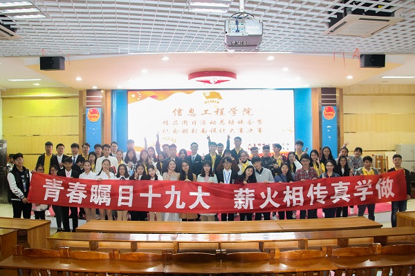 本次晚会还设置了总结汇报视频播放、十九大知识竞答及“红军长征”话剧表演等趣味环节,有效地增加了大会的趣味性。最后,16数媒团支部赢得了信息工程学院纪念册封面大赛一等奖。