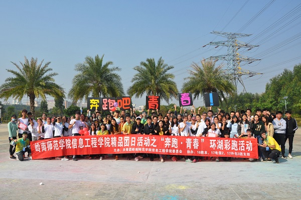 踏梦缤彩之旅,放飞青春梦想。12月9日,乍寒还暖的周末,暖洋洋的冬阳让人忍不住想离开宿舍,到户外去跑一跑。为号召同学们“走出宿舍走向户外”,增强支部凝聚力和团体默契,信息工程学院精品团日活动之“奔跑•青春”环湖彩跑活动于瑞云湖顺利举行。团委指导老师刘利丹、团委的相关工作人员和参赛选手出席了本次活动。