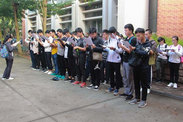 为有效提高新生的普通话水平与英语口语水平,积极营造良好的学习氛围,10月18日早上七点,信息工程学院于雷阳楼附近正式开展“晨曦诵书香,澄静咏雅言”阳光晨读活动。学院2017级全体新生参与了此次活动。