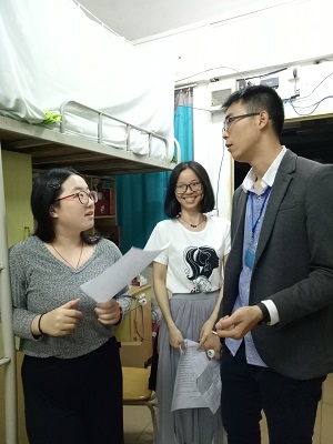 潘老师与干部走访毕业生宿舍