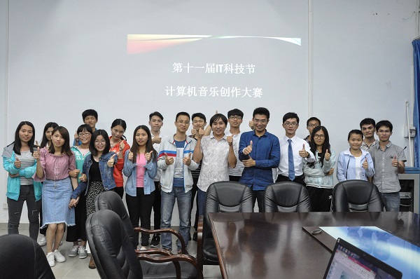 为了让信息工程学院的芊芊学子能在学习信息技术的同时提高人文素养,4月22日,岭南师范信息工程学院在雷阳楼b栋101室举办了第十一届it文化节之计算机音乐创作大赛。本次大赛特邀曾绍庚、彭增焰和屈志奋等老师担任评委。