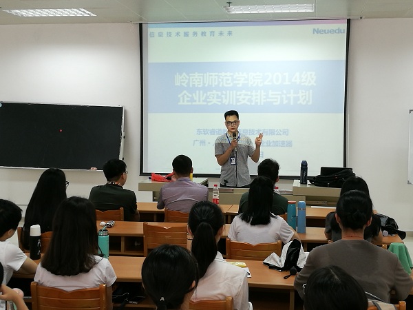 陈寿旺对岭南师范学院东软睿道软件学院2014级企业实训方案java方向作了重点介绍,具体包括了课程体系、课程名称、课程内容、企业课时以及培养方式等。他以java软件工程师学习路径为例,详细介绍了html5前端核心、javaee专业核心、javaee高级应用、x-孵化器实践以及综合职业技能等五个学习阶段。他强调,东软实训教育完全不同传统的教育模式,以结果为导向、注重高强度的知识技能学习、引导学生提前接触社会与企业、熟悉商业社会的管理规则等等。陈寿旺还分析了13级软件服务外包专业的师兄师姐的企业实习就业结果,积极鼓励14级同学们要树立学习信心和就业信心。