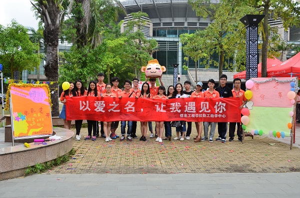 5月20日,在这个“520”象征“我爱你”的网络情人节,信息工程学院勤工助学中心以“以爱之名,让我遇见你”为主题,于雷阳区体育馆门前举办心理健康节活动。