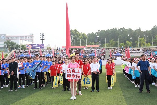 青春的脚步,快如金秋之风;绽放的笑容,灿若春晓之花。11月16日,岭南师范学院迎来了第26届校运动会。为展示信息学子的运动风采以及学院风貌,信息工程学院的师生们整装待发,积极参与到校运会中。信息工程学院党委书记林汉、副书记兼关工委主任吴万、副院长张子石以及院关工委副主任、前副院长邓明在辅导员们的陪同下前来大本营指导工作并观看运动赛事。场内场外洋溢着热情澎湃、活力四射的气氛,领导老师亲切走访慰问,信息健儿挥汗赛场,学生组织充当坚强后盾,学院班级自成啦啦队。