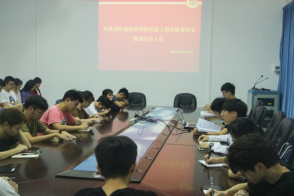 4月19日,信息工程学院于雷阳楼101室召开共青团岭南师范学院信息工程学院委员会动员大会。信息院辅导员刘利丹以及全体团委成员参加本次大会。