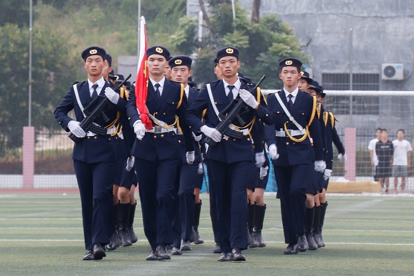 清晨阳光明媚,微风和煦。伴随着激昂的军乐,国旗护卫队以饱满的精神、铿锵的步伐护送国旗入场。面对冉冉上升的国旗,我院全体师生肃然起敬,跟唱国歌并行注目礼,表达对国旗的崇高敬意,展现真挚的爱国热情。