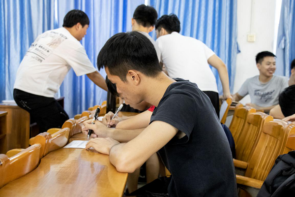 学生填写报名表(张海富 摄)