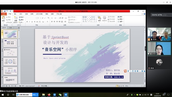 毕业论文是大四学生的一项最重要的任务,答辩是其中的重要环节。因疫情防控需要,学生未能返校,根据学校相关要求,软件学院经多轮讨论制定了《2020届毕业设计(论文)线上答辩计划》。为确保答辩顺利进行,各答辩小组师生都提前熟悉了各种软件使用方法,反复对使用的平台、录音录像、讲解演示方式等进行预演。