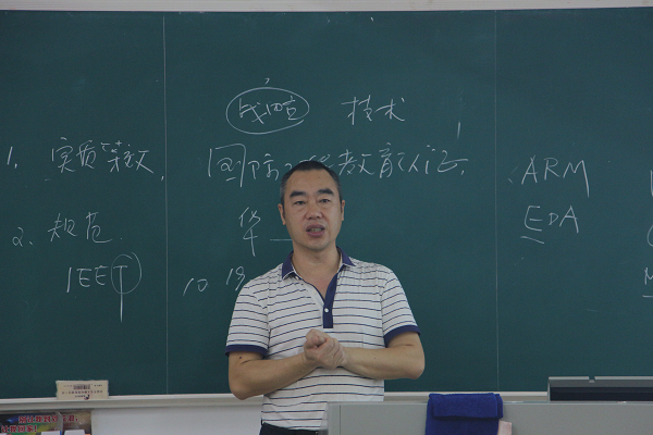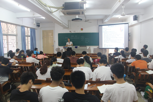 杨俊杰从当前国际形势出发,向学生讲述了美国对中国施行国际性无端科技与贸易限制的现象,并对我国科技发展所面临的机遇和挑战作详细分析,从而引导学生要脚踏实地、奋发图强、自主研发、敢于创新。