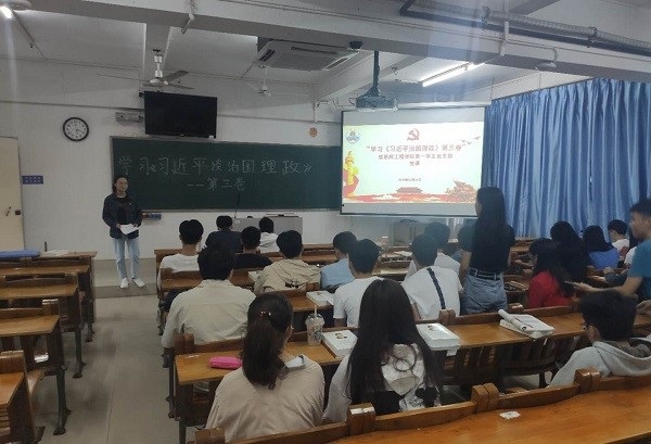 10月25日下午,信息工程学院第一学生党支部在弘雷楼608召开理论学习会,组织全体党员集中学习交流《习近平谈治国理政》第三卷。会议由组织委员彭林玉同志主持。