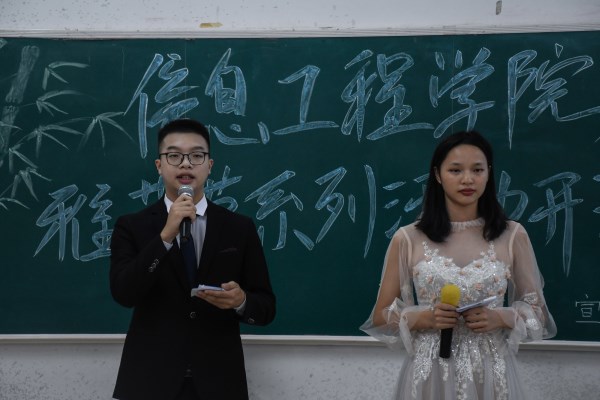 宣委正职负责人李倩作开幕式致词。她表示,开展雅艺节系列活动旨在让信息学子重视人文素养,树立文化自信,做好文化传承。在比赛过程中以彰信息学子文化创作水平,丰富信息学院人文气息。她祝愿所有参赛选手都能稳定发挥,赛出水平,赛出风采。此外,开幕式还有话剧表演《竞选班长》,声乐表演《青花瓷》,活跃了现场气氛。
