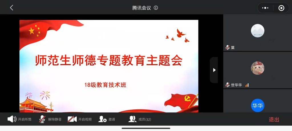 10月8日至11日,计算机与智能教育学院教育技术学专业全体师范生中开展了师德养成教育专题会。各班讲解人针对《新时代中小学教师职业行为十项准则》做了主题讲解,然后班级班委分别结合自己的职责工作,从学生角度对师范生的师德养成做了汇报发言。与会人员就师德与职业道德的内在关联、以及师德教育与专业学习融合等问题进行了深入讨论。教育技术学系主任讲到,在落实第一课堂和第二、三、四课堂相联动中,形成养成式、立体化、递进式、浸润式系统设计,形成四年不间断、可操作的工作方案。具体可以落实在师范生教育技能大赛、党史知识学习大赛、职业规划大赛、入学教育和毕业教育、三笔字、心理健康月、志愿服务活动、课程思政、雷锋月活动等活动中。
