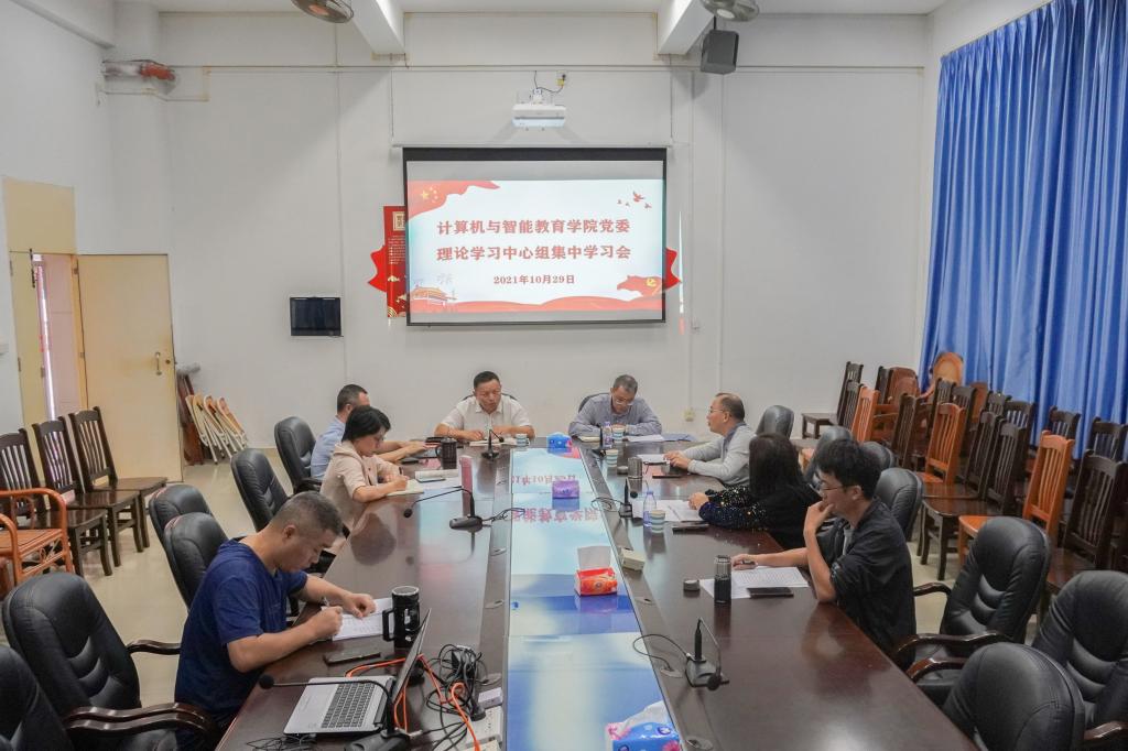 10月29日,计算机与智能教育学院2021年党委理论学习中心组第七次集中学习会在综合实验楼B栋101会议室召开。学院党委理论学习中心全体组成员参加了会议。会议由学院党委书记李海文主持。学校纪委副书记、纪检监察室主任付继发,纪检监察室综合审理科科长钟研对学习会进行了巡听。