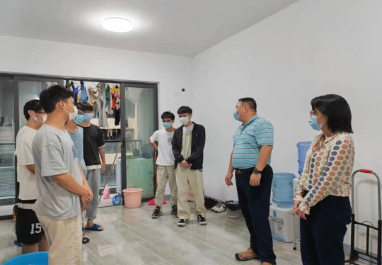 走访过程中,李海文与同学们亲切交流,认真了解同学们在线上学习的情况,并对住宿条件、用餐问题、防控措施等方面进行详细询问,对同学们在疫情防控期间坚持努力学习和保持良好的生活状态给予了赞扬和鼓励。