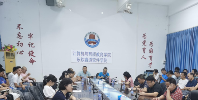 6月15日,计算机与智能教育学院在综合实验楼B栋101会议室召开了全体教职工大会开展教职工政治理论学习,会议由李海文书记主持,全体教职工参加。本次学习专题:学习贯彻习近平新时代中国特色社会主义思想。