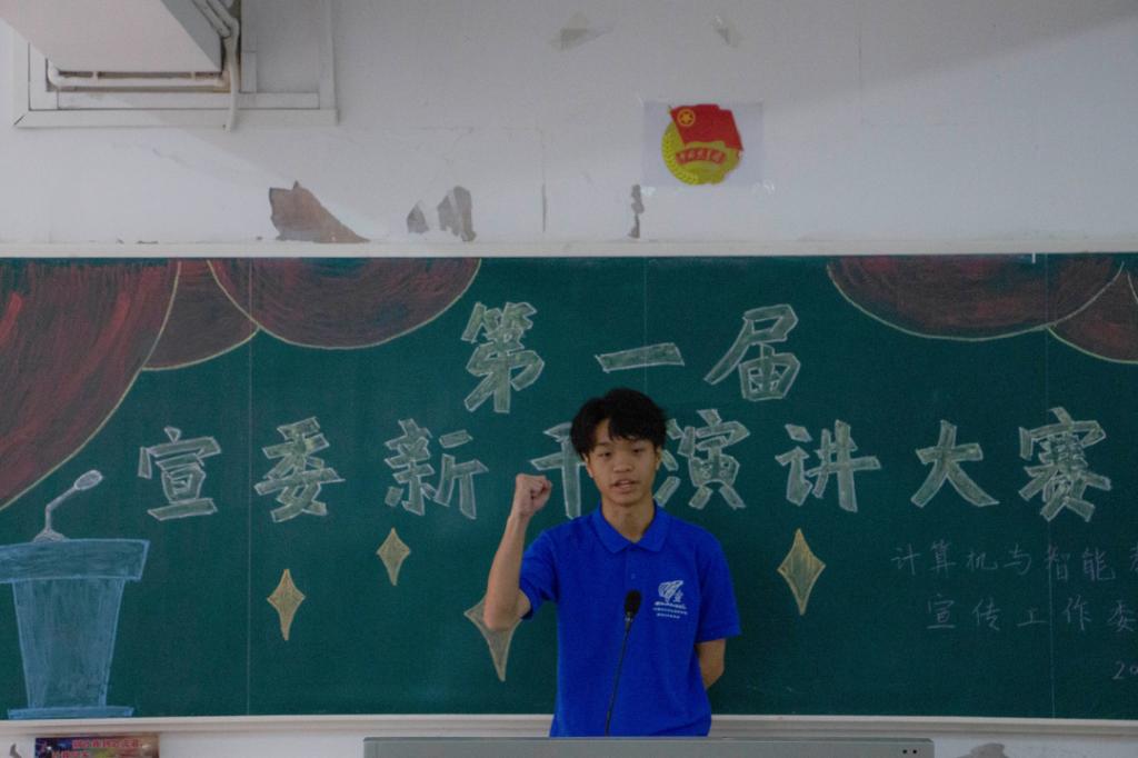 演讲比赛中,干事们热情洋溢、慷慨激昂。用真挚的情感和激昂的语言讲述着中国共产党的奋斗历程,以饱满的热情、深情的语言诉说当代青年的使命与担当。一声声铿锵有力的呐喊,一次次掷地有声的呼吁,深含着他们对党和祖国的热爱,激励着观众奋发向上。“青春到底是什么?”新闻部的干事邓开龙用发自内心的提问,告诉我们要用有限的青春创造无限的可能。网络部的任宇强用激昂而洪亮的声音说到,要坚定地做自己,把自己的青春献给自己,献给未来。他们用声情并茂的演讲感染了台下的每一位观众,引起了所有人对于国家,对于党事业的共鸣,收获了全场热烈的掌声。