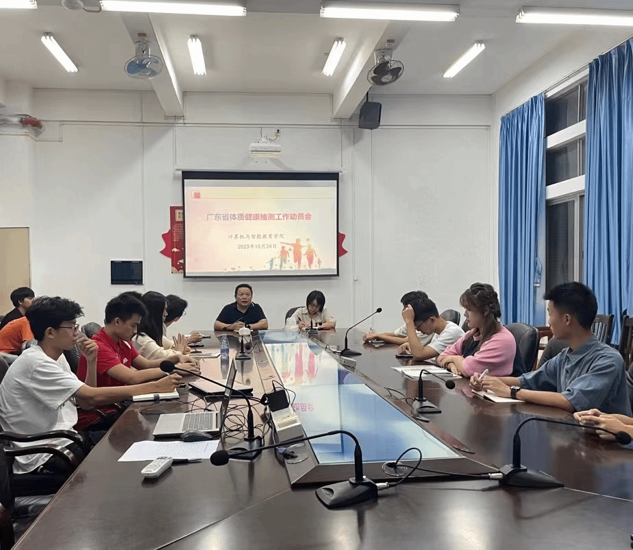体育之效,在于强筋骨,增知识,调感情,强意志。为提升我院学子体育素质,增进体育意识,激发同学的体育热情,10月28日,计算机与智能教育学院于雷阳楼B栋101室召开广东省体质健康抽测工作动员会。出席本次会议的有学院党委书记李海文、学院党委副书记陈明娟、2023级辅导员倪光睿老师及2023级班长和体育委员。