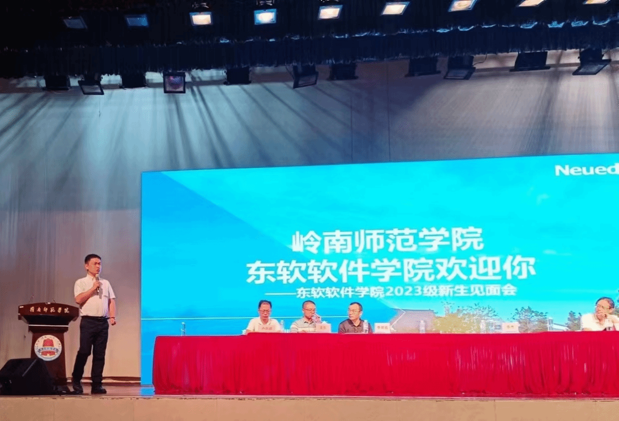软件工程专业是岭南师范学院计算机与智能教育学院与广州东软睿道教育信息技术有限公司联合培养专业。软件工程系主任吴东副教授从专业历史沿革、专业特色、师资队伍、人才培养成效、培养目标与办学定位等方面展开介绍。重点介绍了软件工程专业特有的校企协同培养模式。他向同学们大学四年的学习生活提出了新的期望,他希望同学们能持续一个专业方向的学习、坚持一项体育锻炼、至少参加一次科技赛事、加入一个社团组织、至少参与一次对外交流、至少开展一次社会实践以及投身一项志愿服务。