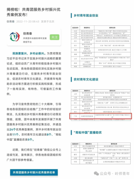 近年来,岭师团委坚持以习近平新时代中国特色社会主义思想和习近平总书记关于深入开展学雷锋活动的重要指示为根本遵循,深耕新时代雷锋精神实践沃土,大力弘扬奉献、友爱、互助、进步的志愿服务精神,不断创新志愿活动组织形式和实践路径,团结引领广大青年大学生把坚定的理想信念和崇高的道德追求转化为利人助人的具体行动,踊跃投身乡村振兴、基层治理、西部建设、“百千万工程”“绿美广东”等重要领域,陆续打造出“岭师云支教/四点半云课堂”“保护红嘴鸥行动”“金晖行动”“科普进社区”“续生环保卖场”等一批亮得出、叫得响、走得远的志愿服务品牌,获得了青年学生的积极响应和社会各界的广泛赞誉。
