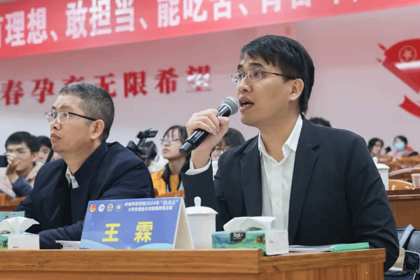 开幕式上,校团委书记林仲彦上台为评委们颁发聘书并致辞。“我校历届‘挑战杯’竞赛取得的亮眼成绩,凝聚了全体师生特别是对‘挑战杯’竞赛保持长期热忱、积极参与的老师同学们的智慧与汗水。”林仲彦对入围决赛答辩的团队和师生表示热烈的祝贺,充分肯定了本届竞赛团队的专业素养、创新思维和科研实力。他希望同学们能自觉担负起民族复兴的使命与担当,将科创主动融入国家发展和社会服务,把论文写在祖国的大地上。