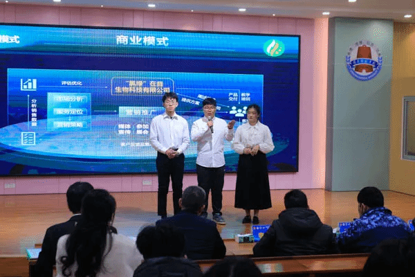 本次比赛分为陈述环节和答辩环节。各团队主讲人借助答辩PPT与其他辅助材料,针对项目背景、商业规划、品牌应用、成果转化等内容向现场评委和观众作了展示,评委老师逐一进行提问和点评。
