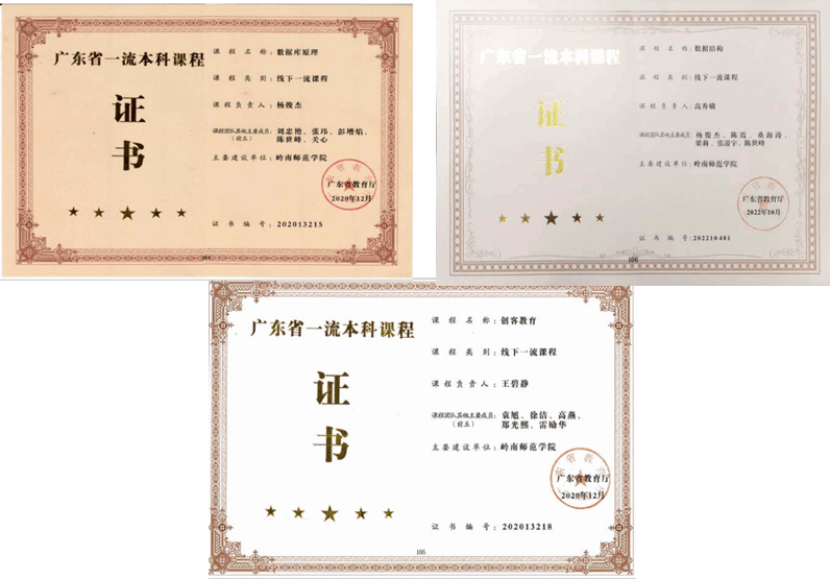 专业教师教学科研成果显著。获得广东省教学成果奖一等奖2项,获得广东省一流课程3门,广东省教学团队2个,教育部产学合作协同育人项目10余项、广东省专业综合改革项目2项、获得省级以上教学研究项目30余项,出版规划教材10余部;获得省级科技进步奖二等奖1项,省级科技进步奖三等奖2项;承担国家自然科学基金项目、国家社科项目、教育部人文社科项目、省级科研项目等10余项,获授权发明专利、实用新型专利、软件著作权300余项,三大检索收录论文100余篇。
