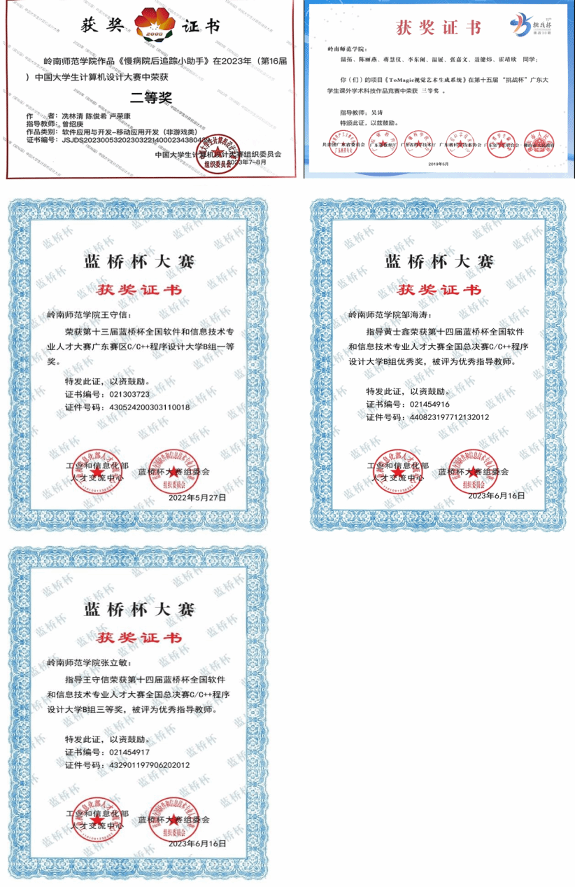 本专业坚持学院的“立德树人、以生为本”办学理念,在学生创新创业及专业竞赛方面进行了一系列的改革和实践,取得了显著的成效。近年来,学生在国际大学生程序设计竞赛(ACM-ICPC)、挑战杯、蓝桥杯、中国大学生计算机设计大赛等比赛中,先后获得国家级、省级和市厅级奖项40多项,学生获得“攀登计划”立项项目3项,大学生创新创业训练计划项目10项。学生的创新能力得到极大的锻炼。