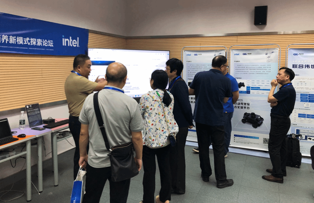 研讨会上,参会人员参观了联合伟世的现场产品展示区域,并与现场的技术人员展开讨论和交流,对联合伟世在AI教育教学的整体解决方案给予了高度评价。