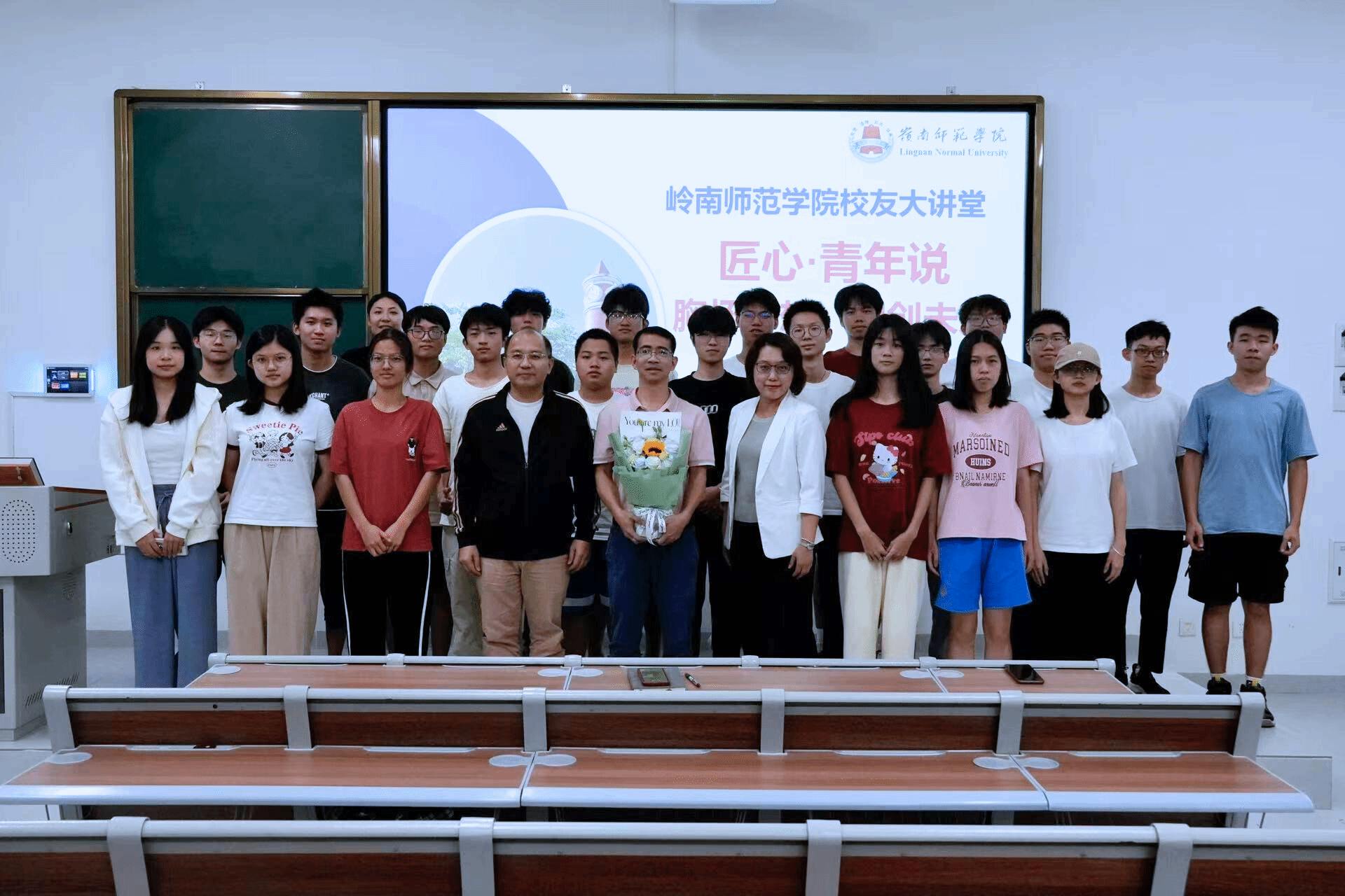 最后,陈明娟副书记对本次报告作总结讲话,她对校友和参会的同学们表示感谢并提出三点希望:一是希望同学们要树立“躬耕教坛,强国有我”的志向和抱负,涵养扎实学识,勤修仁爱之心;二是希望同学们营造良好的班风学风,积极参加专业项目和创新创业比赛,提高核心竞争力,大力弘扬教育家精神;三是希望同学们要坚持梦想、永不言弃,要勇于挑战自我,追求更高的目标,争做新时代岭师人,为教育强国作出应有的贡献。
