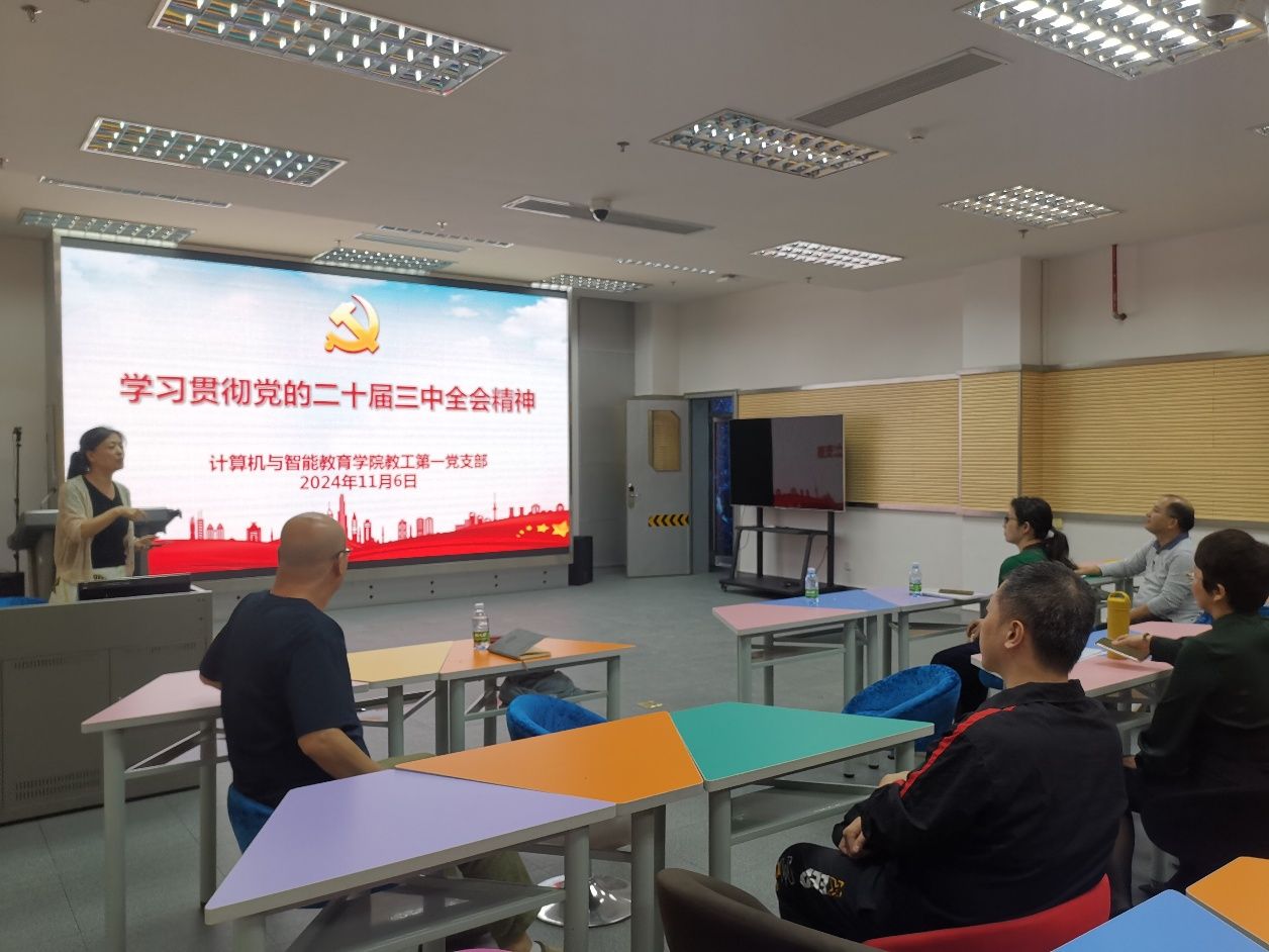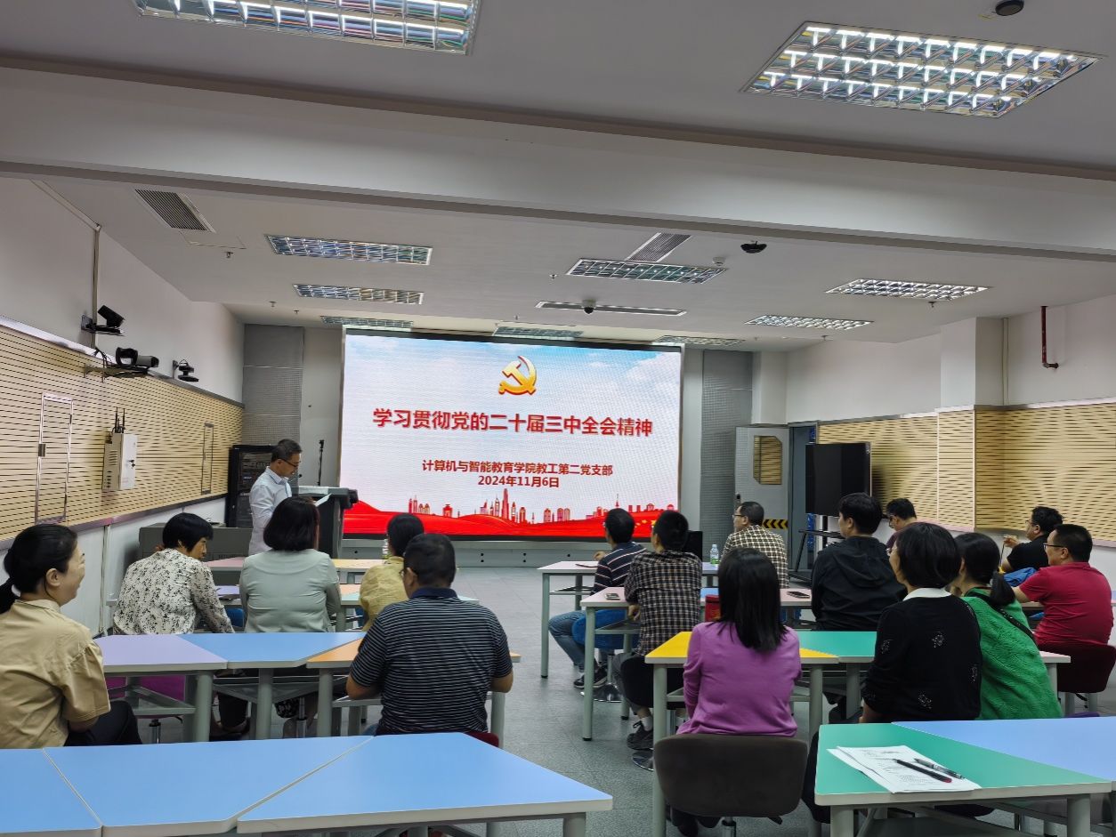 为深入学习贯彻党的二十届三中全会精神,近日,计算机与智能教育学院教工第一、第二党支部和学生第一、第二党支部分别召开主题党日活动深入学习贯彻党的二十届三中全会精神。此次党日活动旨在增强党员的政治意识、大局意识、核心意识、看齐意识,以实际行动践行党的方针政策。在党日活动中,各党支部围绕党的二十届三中全会精神进行了专题学习。通过详细解读会议内容,党员们深刻理解了构建支持全面创新体制机制、增强中华民族共同体意识、传承中华优秀传统文化等重要议题,以及这些议题对于党和国家未来发展的深远意义。