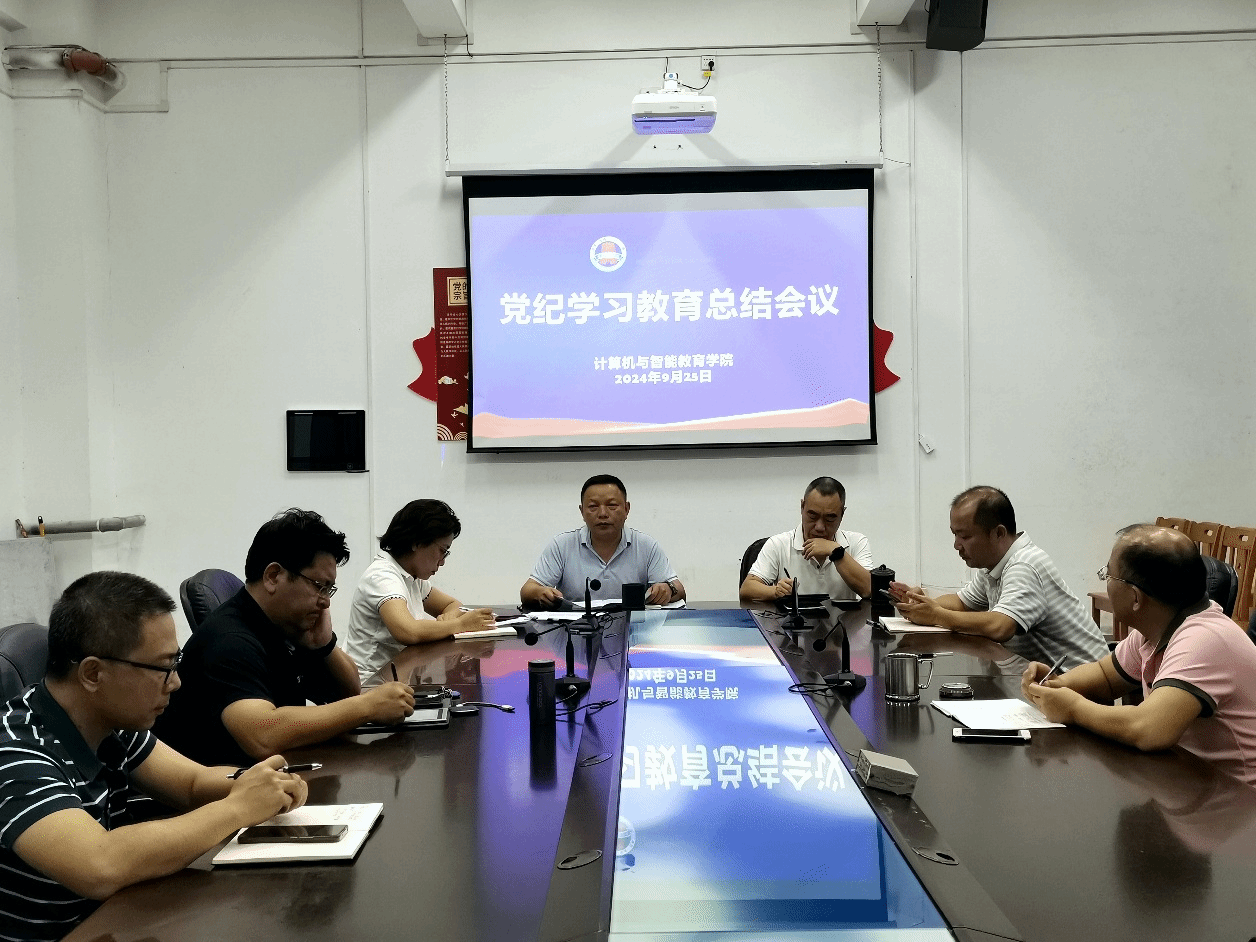 9月25日下午,计算机与智能教育学院党委召开党纪学习教育总结会议,传达学习习近平总书记关于党纪学习教育的重要指示精神、学校党委党纪学习教育总结会议精神,并部署下一步工作。学院党委书记李海文作总结报告,学院班子全体成员以及所有党支部书记参加了会议。