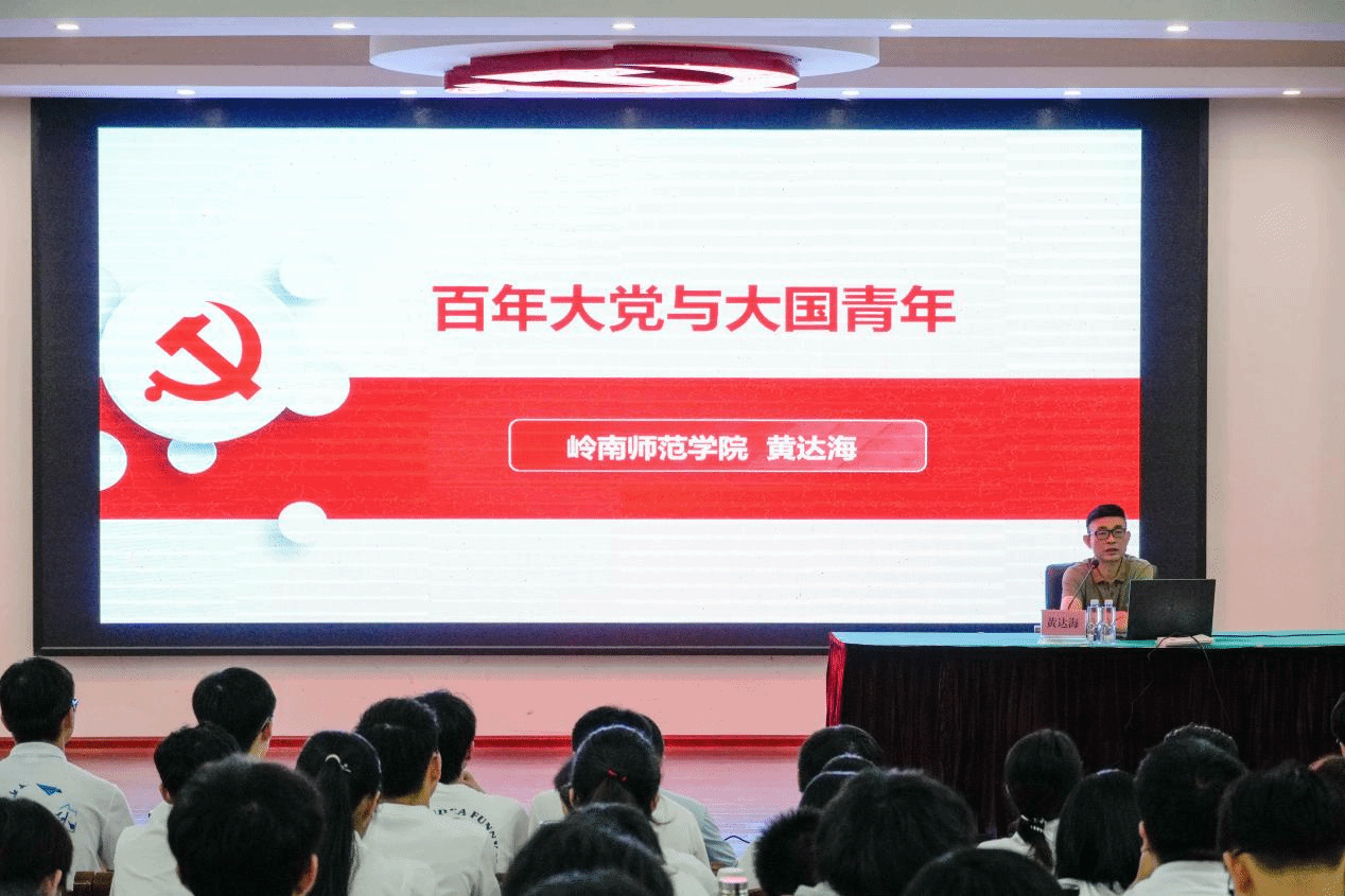 “中国青年始终是实现中华民族伟大复兴的先锋力量。”黄达海副书记从青年的时代定位导入,通过“中国共产党是什么样的政党”“百年党史的深刻启迪”“新时代的中国青年”“新征程的岭师新党员”等四个篇章深入浅出地阐述了百年大党百年历程所取得的恢弘成就、新时代青年应有的精神面貌和使命担当。
