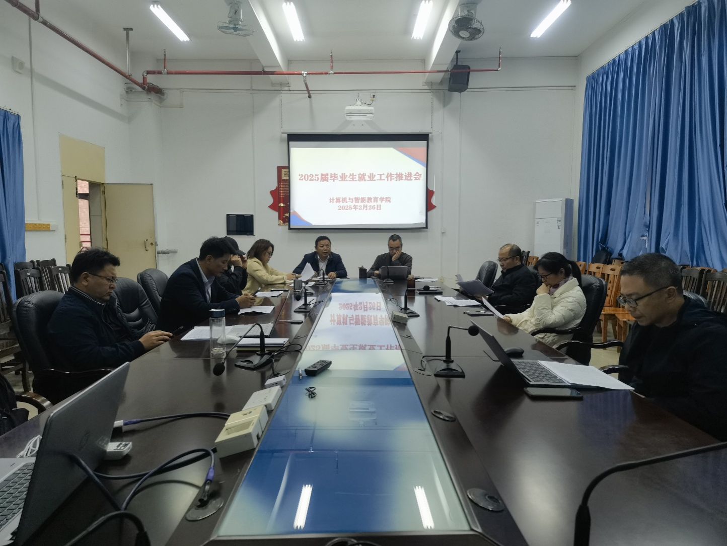 为扎实推进2025届毕业生就业与升学深造工作,明确目标、凝聚合力,近日,计算机与智能教育学院组织召开2025届毕业生就业暨考研复试工作部署会。学院领导班子成员、各教学系主任、教师代表及辅导员参加会议,共同分析当前形势,部署重点工作任务,为毕业生高质量就业和升学保驾护航。
