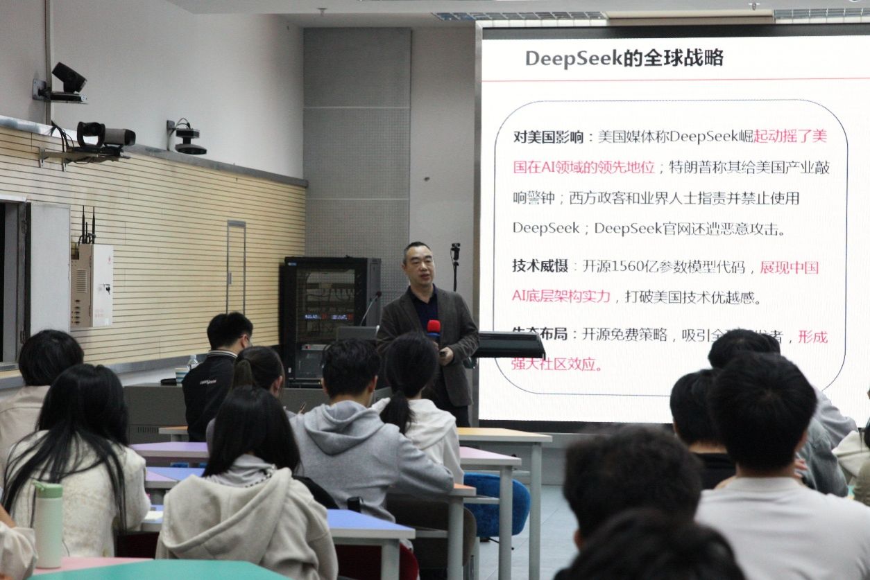杨俊杰以“DeepSeek创新筑梦:青春奋斗融入民族复兴伟业”为主题,为青年们指引方向。他讲述了民族复兴的伟大意义,引导青年们认识到自身肩负的时代使命。他强调,创新是推动国家发展的不竭动力,作为计算机学科背景的学生,更要勇于探索未知领域,敢于创新实践。只有不断创新,才能在激烈的竞争中脱颖而出,为民族的复兴和国家的繁荣贡献自己的力量。他通过具体案例,展示了青春奋斗与民族复兴的紧密联系,这些生动的事例,激发了青年们的爱国热情和责任感,使他们更加坚定了为民族复兴而奋斗的决心。