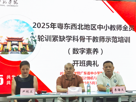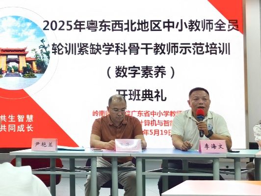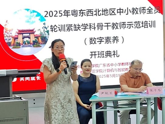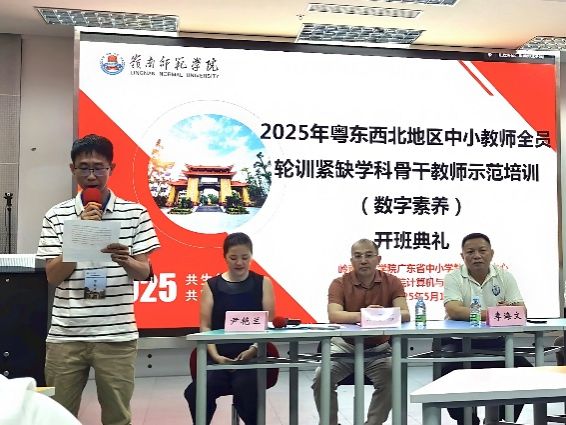 2025年5月19日,2025年粤东西北地区中小学教师全员轮训——紧缺学科骨干教师示范培训(数字素养)项目开班典礼于岭南师范学院综合楼B栋8楼网真教室顺利举行。