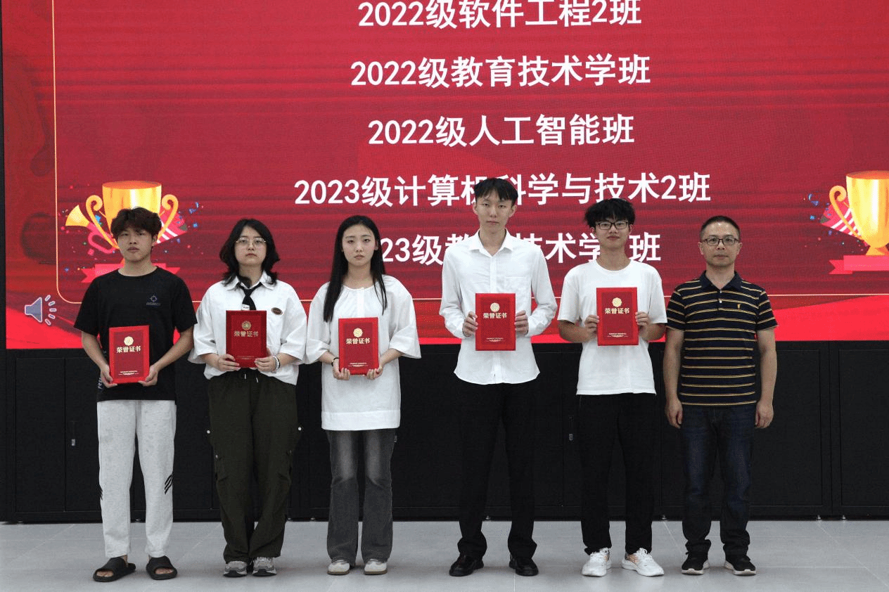 学院授予学风建设先进个人奖86项和集体奖6项。授予刘金芳等9名教师“计算机与智能教育学院2023-2024学年度优秀班主任”荣誉称号;授予沈丹丹等15名老师“计算机与智能教育学院2025年考研工作先进个人” 荣誉称号;授予蔡程等30名同学“考研积极分子”荣誉称号。
