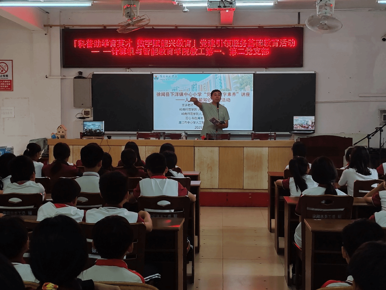 活动首站来到下洋镇中心小学,学院党员充分发挥专业优势,为师生们带来了一场人工智能科普盛宴。通过生动有趣的互动体验,孩子们初步了解了AI技术原理与应用场景,激发了探索科技的兴趣。此次“科普助学育英才 数字赋能兴教育”党建引领服务基础教育活动,不仅以实际行动支持了乡村教育事业,更在孩子们心中播下了科技的种子。