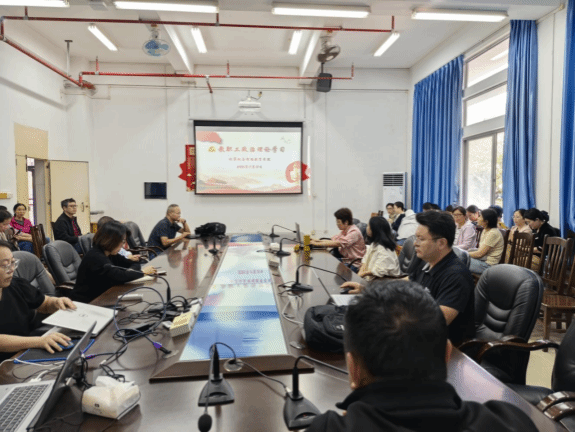 2025年11月12日下午,计算机与智能教育学院在学院101会议室召开全体教职工政治理论学习会,专题学习习近平总书记关于教育、科技、人才的重要论述。学院党委书记主持会议并领学,学院全体教职工参加学习。
