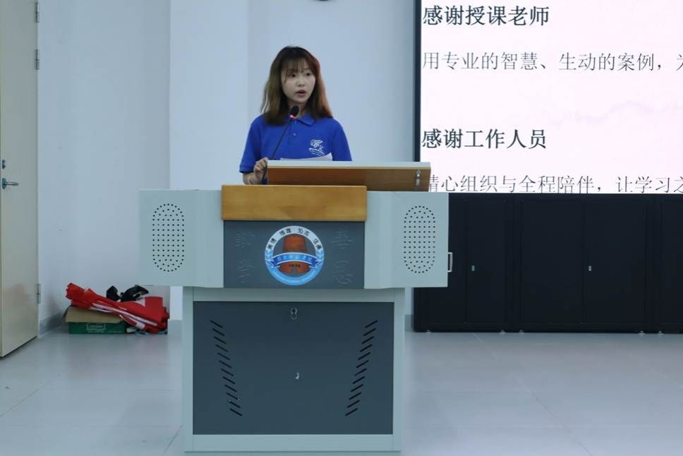 紧接着,学生干部代表上台进行结业汇报。汇报中,各代表结合培训期间的理论学习、实践操作与工作感悟,从组织建设、活动策划、表达沟通等多个维度,全面展示了培训成果与自身成长。
