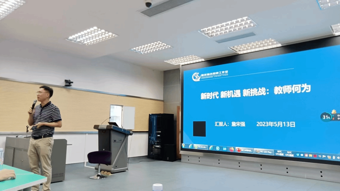 为响应学校“新师范”建设活动的开展,推动地方基础教育和学校教师教育高质量发展。2023年5月13日,计算机与智能教育学院特邀请湛江市第十七中学詹宋强副校长,为教育技术学专业的师生作了题为《新时代,新机遇,新挑战》的个性化报告。本次报告由我院张子石副院长主持,由教育技术学专业全体教师和部分学生参与。