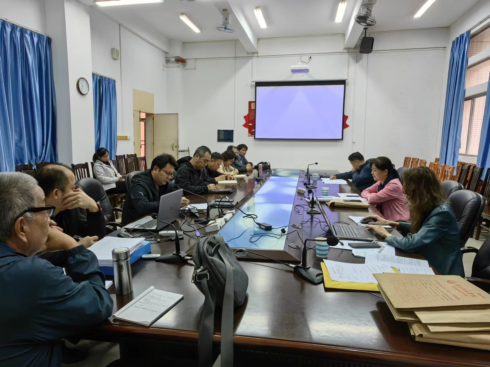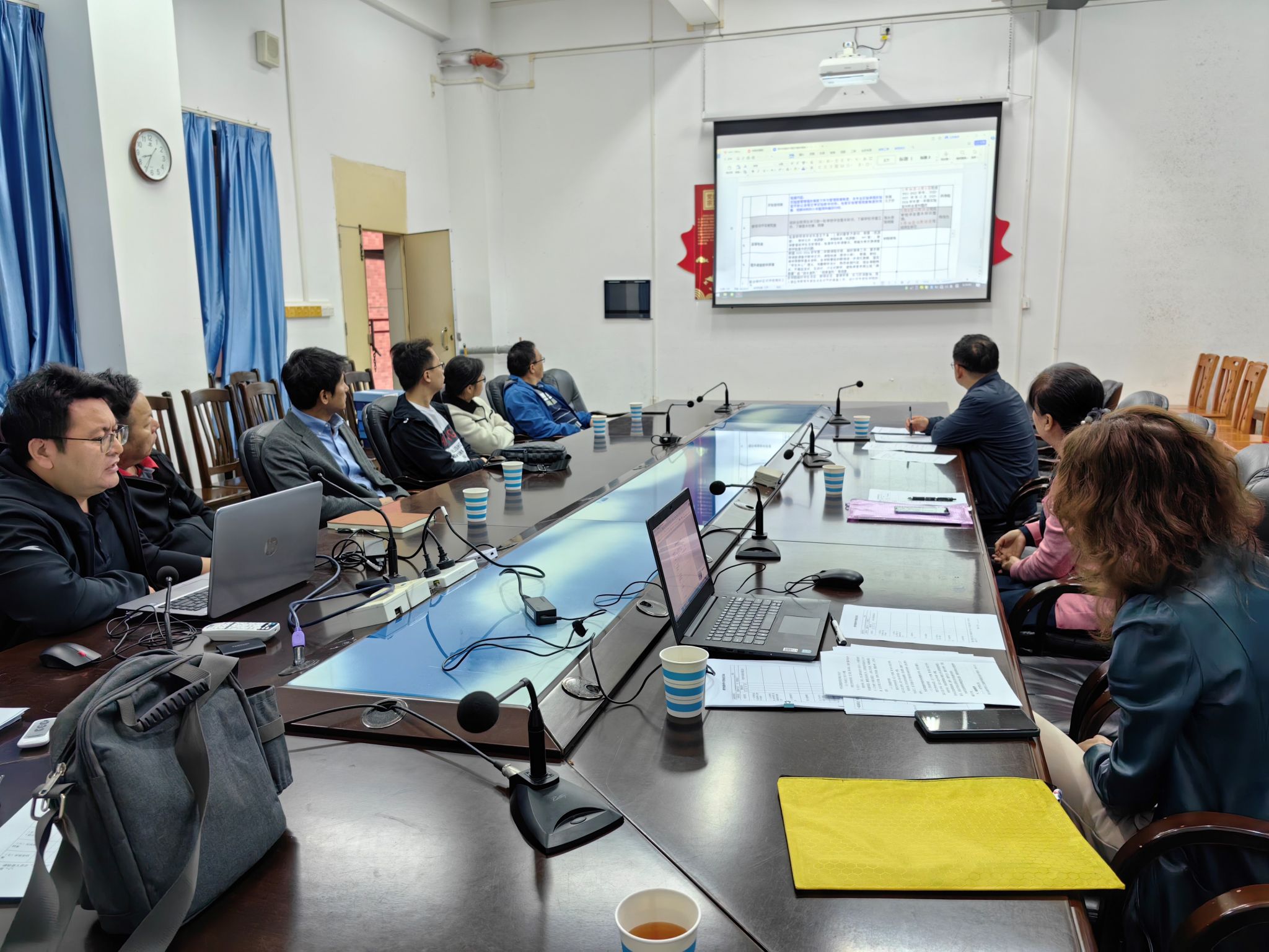 学院李海文书记、杨俊杰院长、陈明娟副书记、洪伟铭副院长、陈永恒副院长、以及系主任周生彬、卢禹锟、沈丹丹参加了反馈意见会议。