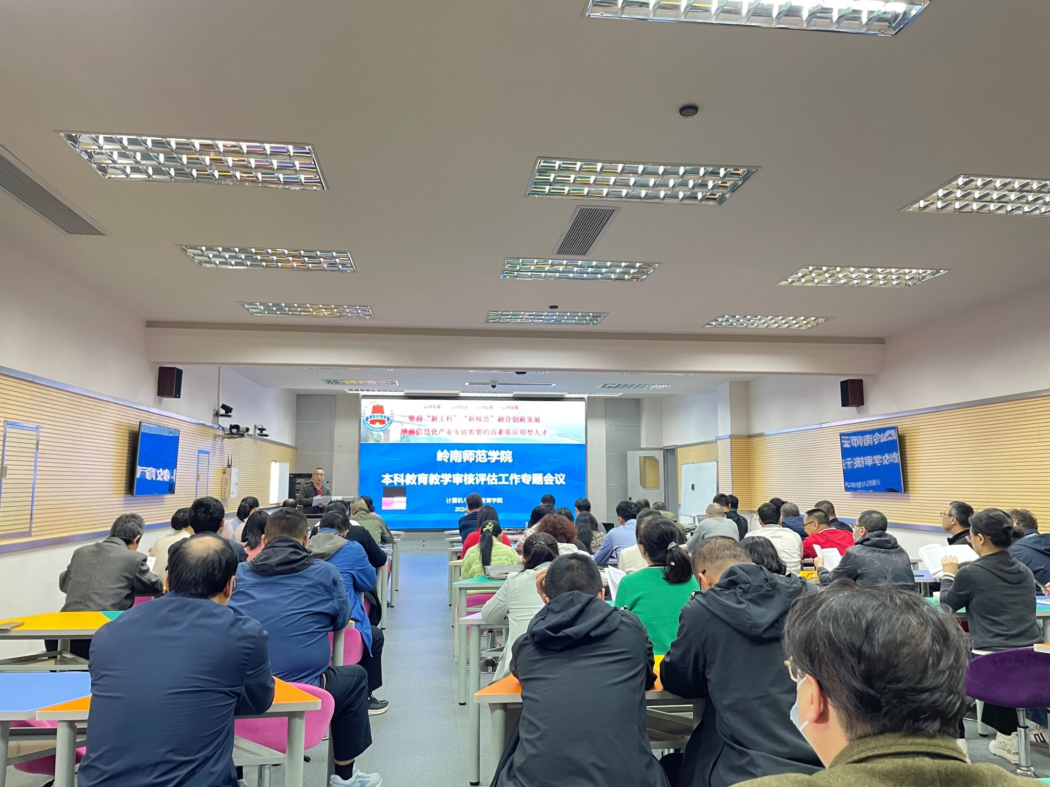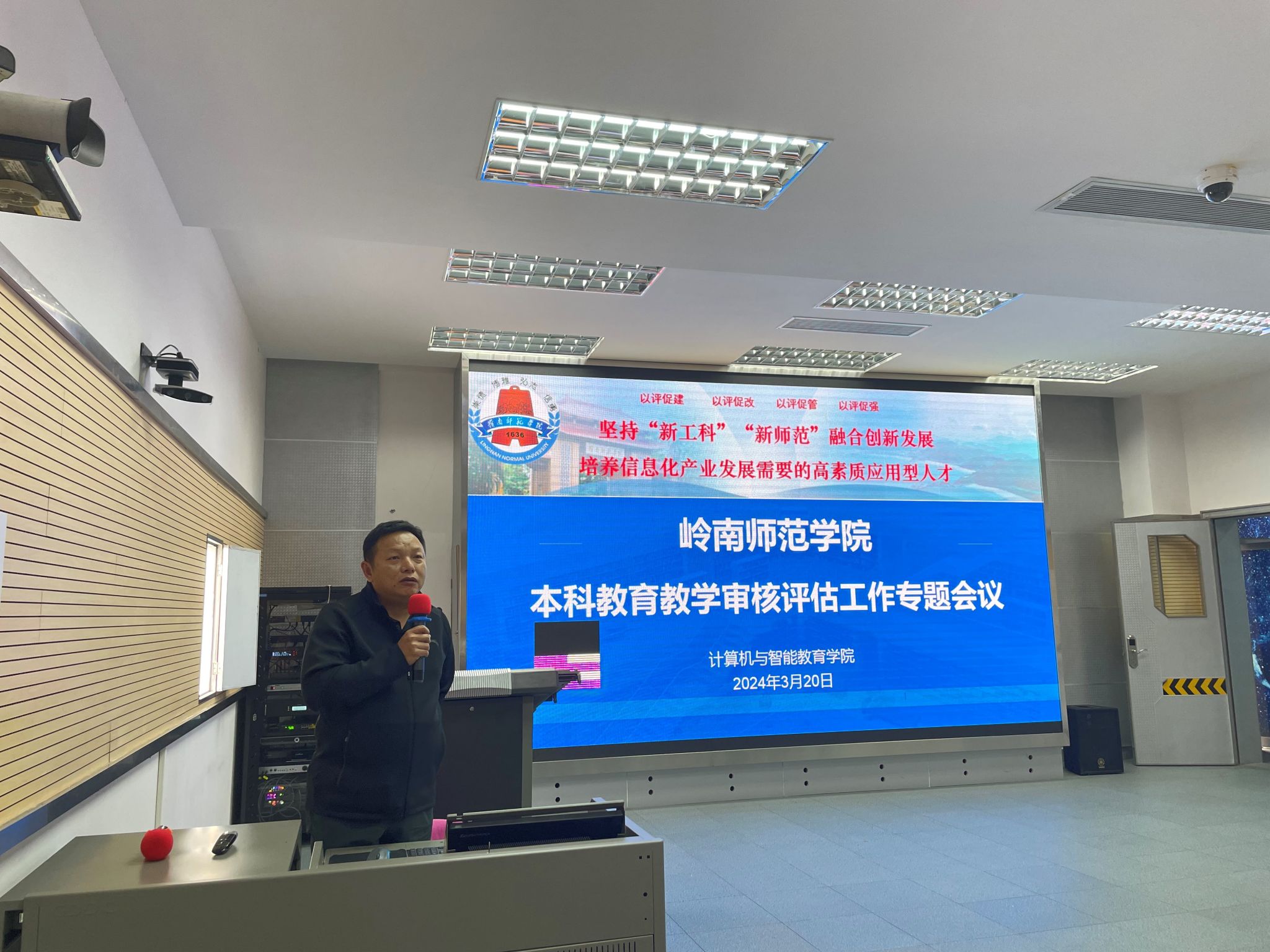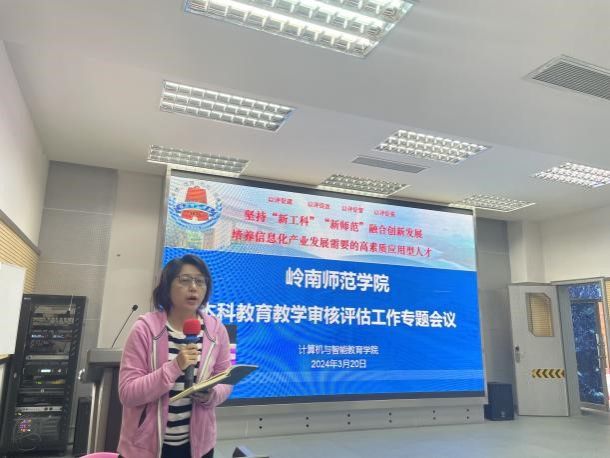院长杨俊杰就线上评估、入校评估等具体工作进行了再动员、再部署,带领大家学习了《岭南师范学院本科教育教学审核评估应知应会手册》,从审核评估基本知识、热词解读、校情校史、评建工作等方面常见问题做了详细解读。