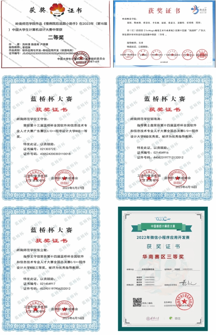 本专业坚持学院的“立德树人、以生为本”办学理念,在学生创新创业及专业竞赛方面进行了一系列的改革和实践,取得了显著的成效。近年来,学生在国际大学生程序设计竞赛(ACM-ICPC)、挑战杯、蓝桥杯、中国大学生计算机设计大赛等比赛中,先后获得国家级、省级和市厅级奖项40多项,学生获得“攀登计划”立项项目3项,大学生创新创业训练计划项目10项。学生的创新能力得到极大的锻炼。