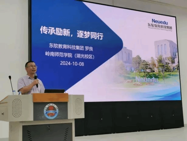 宣讲会上,东软教育科技集团华南区副总经理罗良详细介绍了企业与学校双方合作的历史沿革、取得的丰硕成果以及当前面临的机遇与挑战。他指出,在就业形势日益严峻的今天,培养能够适应市场需求的高素质、复合型、应用型与创新型人才,不仅是高校的责任,也是企业的期望。他鼓励大家要珍惜在校时光,努力学习专业知识,积极参与实践锻炼,不断提升自己的综合素质和竞争力。同时,他也表示东软教育科技集团将一如既往地支持学院的人才培养工作,为同学们提供更多的实习实训机会和职业发展平台。