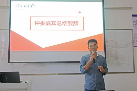 最后屈志奋对此次比赛做总结发言。他从比赛的目的、根本意识与比赛现状等方面提出自己的见解。他表示,同学们要以问题为导向进行学习研究,从比赛中发现问题、解决问题,取得进步。另外,他希望同学们积极参与诸如此类技术创作性比赛,在比赛中得到动手实践能力的锻炼。