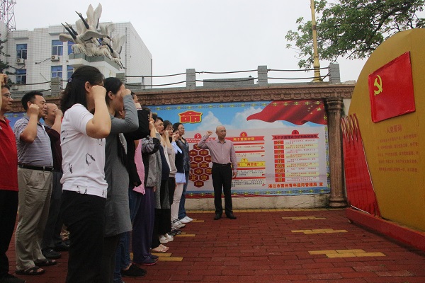 鹤地水库展览馆前,林汉强调,本次“不忘初心 牢记使命”主题教育旨在加深学院党政班子、党支部委员以及学生党支部书记对习近平新时代中国特色社会主义思想和党的十九大精神的理解,用习近平新时代中国特色社会主义思想武装头脑、指导实践、推动工作、规范行动。他表示,参观鹤地水库展览馆,体验“建库开河”的艰辛历程,学习前辈们“为民担当、艰苦创业、无私奉献”的崇高精神和英雄气概,对我们继往开来,在新时代做出新的更大的作为有着重大意义。他希望,参与活动的全体党员同志要认真学习听解,全面掌握鹤地水库的建设历程及其对雷州半岛经济、社会、民生、文化、生态的重大影响及意义,做到学习入眼、入耳、入脑、入心,真真切切将“建库开河精神”内化于心、外化于行。
