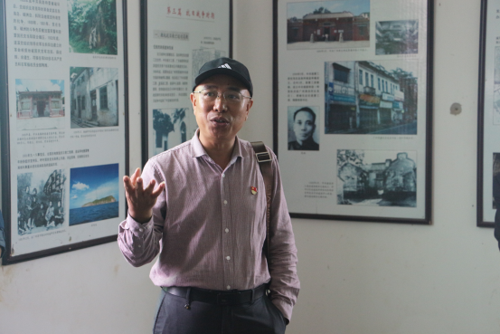 林汉在墩文村文史馆里讲话(屈志奋 摄)