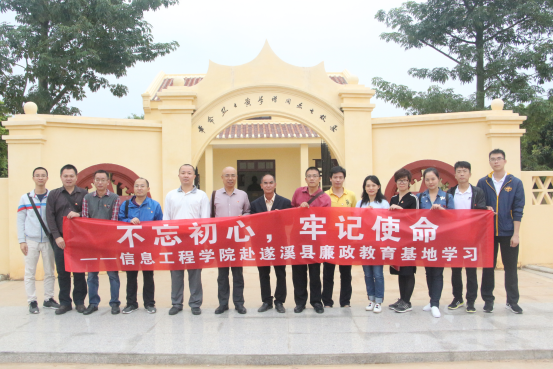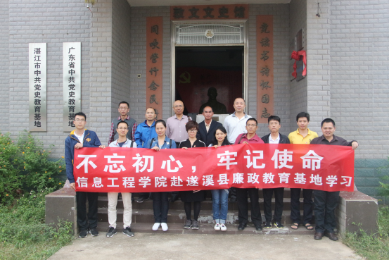 为深入学习贯彻习近平新时代中国特色社会主义思想和党的十九大精神,进一步加强党的政治建设,推进全面从严治党、推进“两学一做”学习教育常态化制度化,2018年10月12日下午,信息工程学院党委赴遂溪县乐民镇遂溪县廉政教育基地(黄学增同志故居)开展“不忘初心、牢记使命”纪律教育活动。
